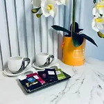 У цьому помешканні передбачені зручності для самостійного приготування їжі, такі як обладнана кухня з електрочайником, холодильником і духовкою.